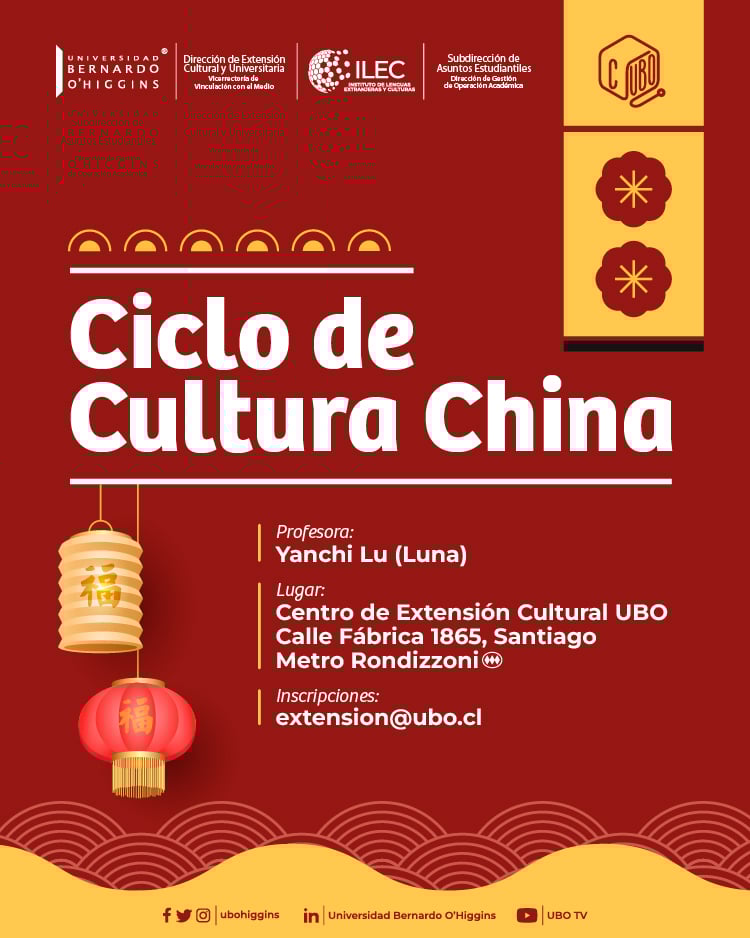 Este ciclo estará a cargo de la profesora Yanchi Lu (Luna) e incluye una serie de talleres gratuitos que se desarrollarán en distintas fechas en el Centro de Extensión Cultural UBO (Calle Fábrica 1865, Santiago – Metro Rondizzoni).