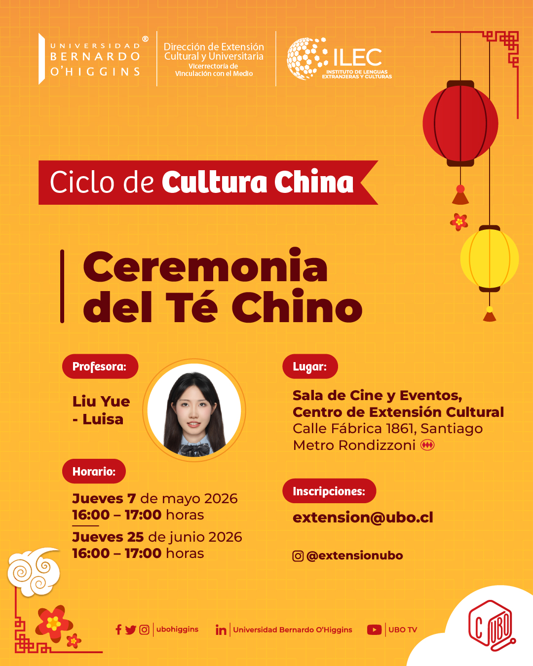 La Universidad Bernardo O’Higgins invita a participar en la Ceremonia del Té Chino, actividad que forma parte del Ciclo de Cultura China, orientado a promover el conocimiento y la valoración de las tradiciones culturales del país asiático.