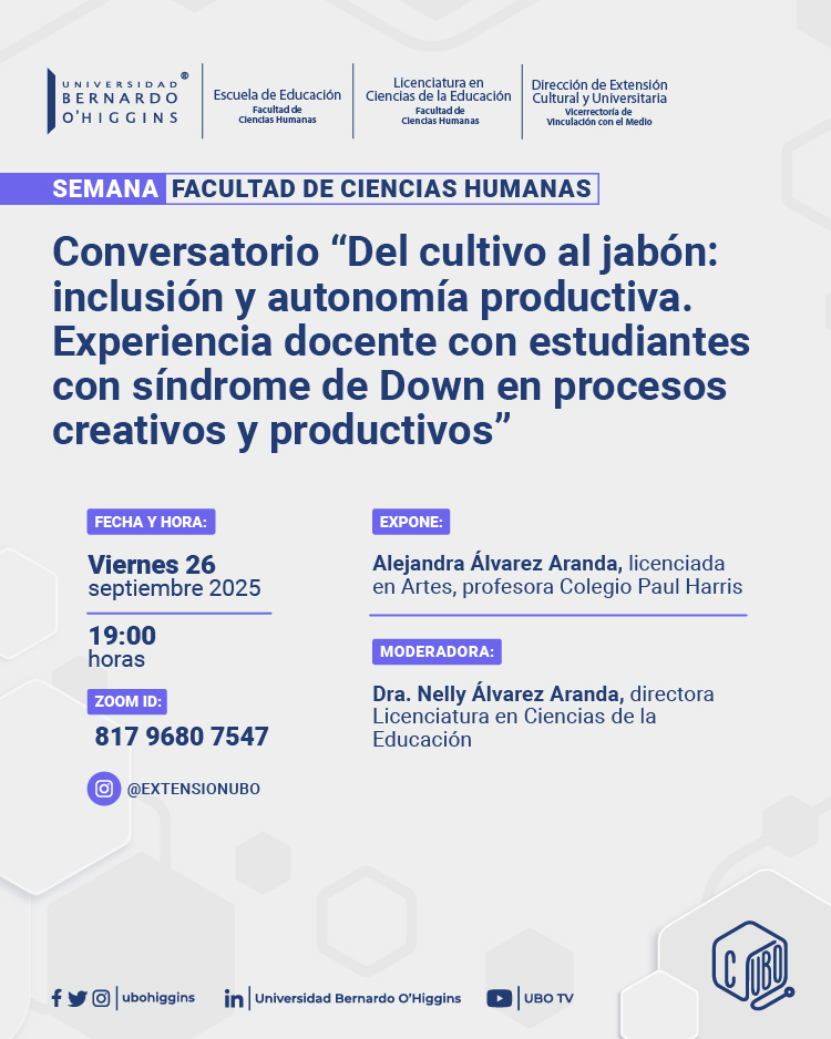 En el marco de la Semana de la Facultad de Ciencias Humanas, la Escuela de Educación y la Licenciatura en Ciencias de la Educación invitan a toda la comunidad UBO a participar en un valioso conversatorio que abordará prácticas inclusivas a través de procesos creativos y productivos en el aula.