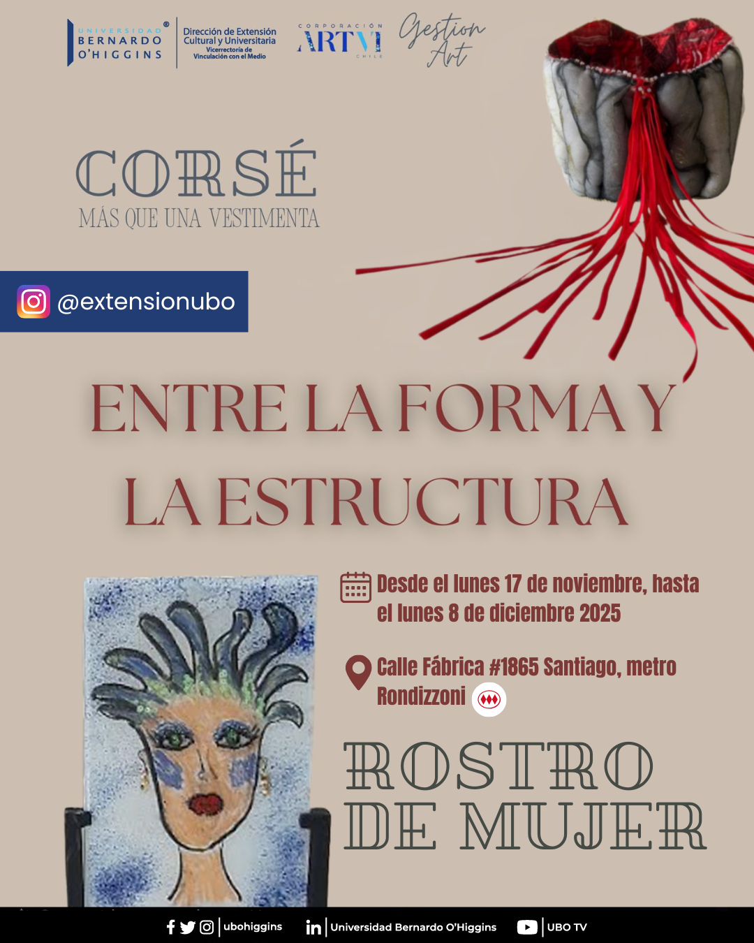 La Universidad Bernardo O’Higgins, a través de su Dirección de Extensión Cultural y Universitaria, en colaboración con Gestión Art y la Corporación ArtVi Chile, invita a visitar la exposición “Corsé, más que una vestimenta. Entre la forma y la estructura”, una muestra que combina arte, reflexión y perspectiva de género.