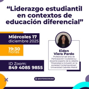 La Universidad Bernardo O’Higgins, a través de la Facultad de Ciencias Humanas y el Magíster en Educación Diferencial, invita a participar en la charla “Liderazgo estudiantil en contextos de educación diferencial”, un espacio de reflexión y diálogo en torno al rol protagónico de los estudiantes en entornos educativos inclusivos. En esta instancia contaremos con la […]