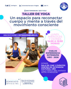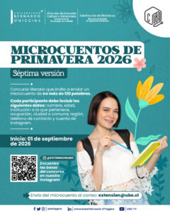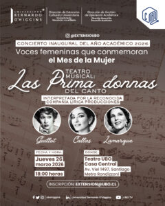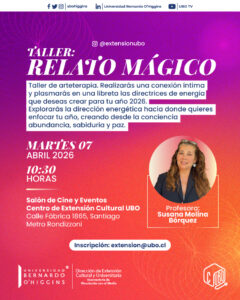 Extensión CulturalDepartamento de Extension2025-09-01T13:06:52-04:00 30 enero Regálate un respiro con nuestro Taller de Yoga gratuito 30 enero Exposición “Chien Champion MVP 90” 20 marzo Exposición Colores para Lilith – Haydée Herrera 26 marzo Concierto inaugural Año Académico 2026: “Las Prima Donnas del Canto” 07 abril Taller: “Relato Mágico” – Arteterapia para iniciar tu año 2026 14 abril Lanzamiento del libro «En el corazón de la noche» 08 agosto Exposición colectiva APECH: Directrices. 86 años de historia, creación y defensa del arte visual en Chile 01 septiembre Microcuentos de Primavera 2026 – Séptima Versión 10 noviembre Sanando el Corazón – Taller de Arteterapia ¡No hay eventos!
