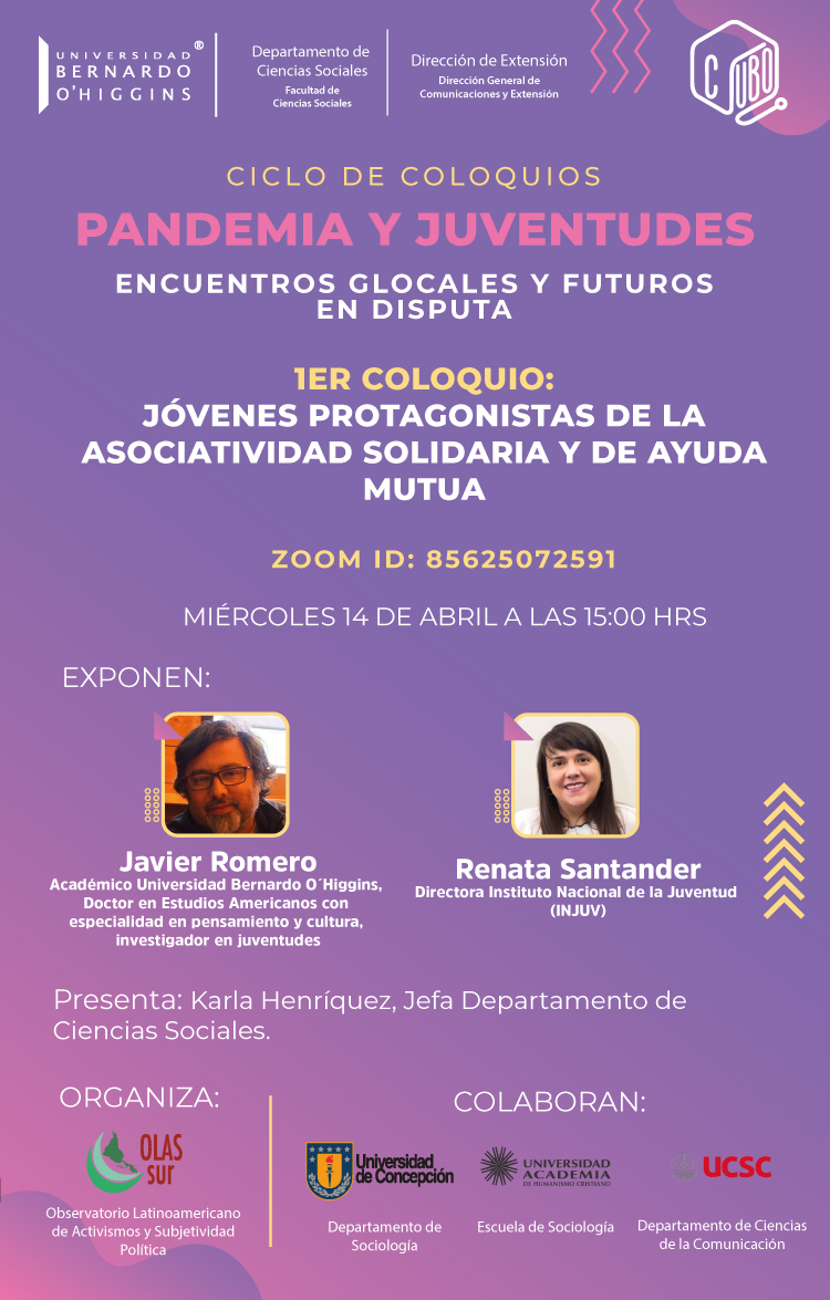 Jóvenes protagonistas de la asociatividad solidaria y de ayuda mutua Departamento de Extension2021-11-22T12:07:29-03:00https://us02web.zoom.us/j/85625072591 noviembre 22, 2021Dirección de Extensión Read more...