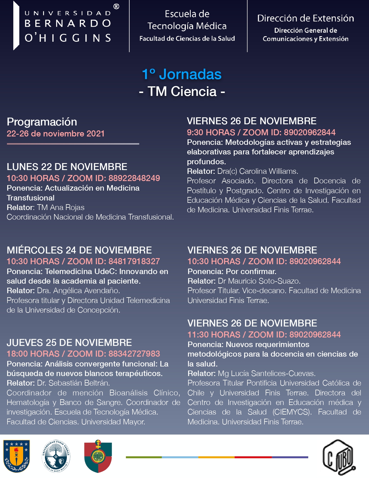 Primera jornada de tecnología médica Departamento de Extension2021-11-22T11:30:38-03:00https://us02web.zoom.us/j/89020962844 noviembre 22, 2021Dirección de Extensión Read more...