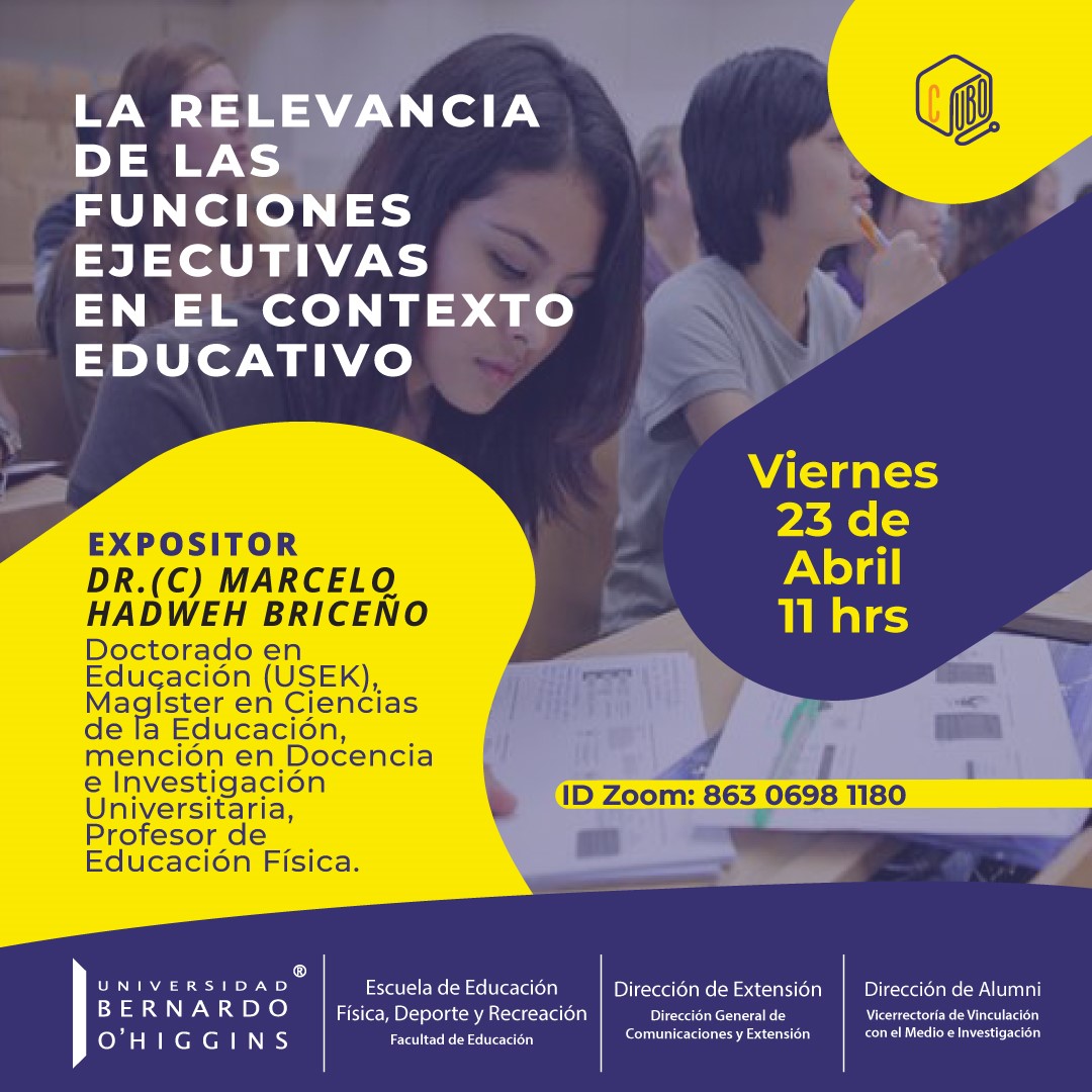 La relevancia de las funciones ejecutivas en el contexto educativo Departamento de Extension2021-11-22T12:24:12-03:00https://us02web.zoom.us/j/86306981180 noviembre 22, 2021Dirección de Extensión Read more...