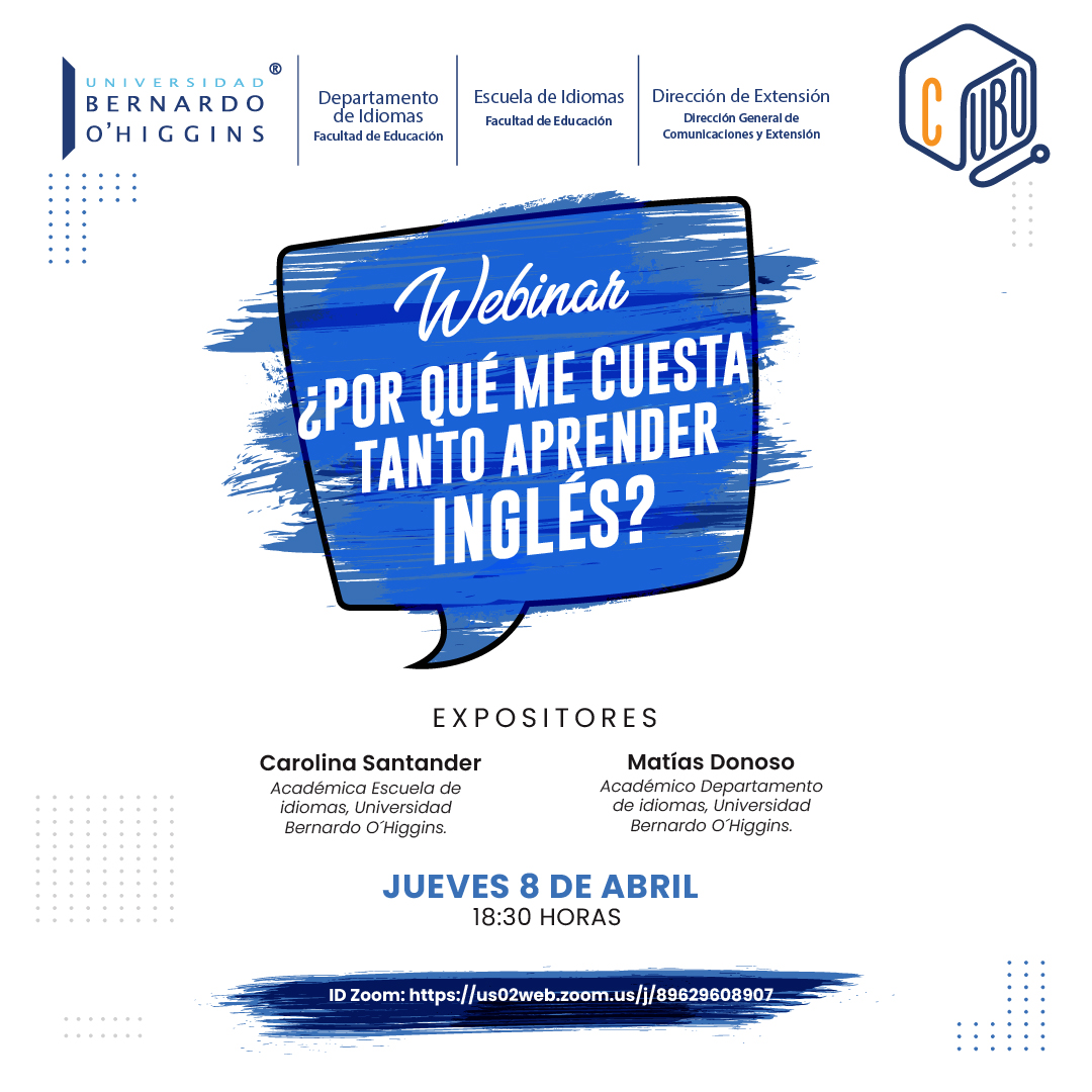 ¿Porqué me cuesta tanto aprender ingles? Departamento de Extension2021-11-22T11:53:19-03:00https://us02web.zoom.us/j/89629608907 noviembre 22, 2021Dirección de Extensión Read more...