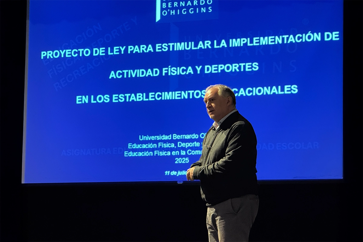 La Universidad Bernardo O’Higgins (UBO), a través de la Facultad de Ciencias Humanas y la Escuela de Educación Física, Deporte y Recreación, organizó una charla informativa orientada a reflexionar sobre los alcances del proyecto de ley que promueve 60 minutos diarios de actividad física en los establecimientos educacionales del país. La jornada estuvo dirigida a estudiantes de Pedagogía en Educación Física y contó con la presencia de Patricio Venegas Pinto, profesional de apoyo de la Unidad de Actividad Física Escolar del Ministerio de Educación.