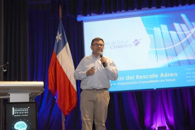 Por su parte, Pablo Pino, jefe de Transporte y Rescate de la Red de Salud UC Christus, presentó la ponencia “Experiencias del rescate aéreo aplicadas a la preparación comunitaria en salud”.