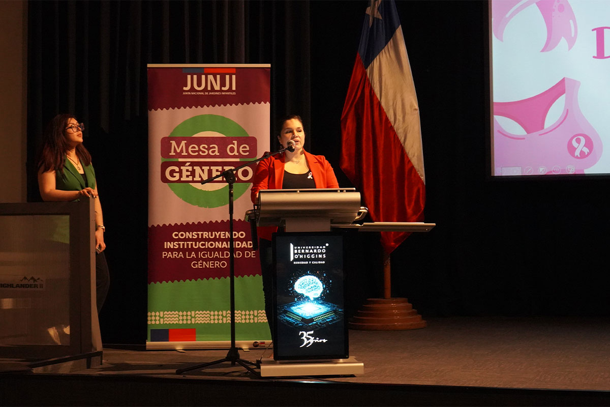 En el marco del mes de la prevención del cáncer de mama, la Universidad Bernardo O’Higgins (UBO), a través de la carrera de Obstetricia, la Agrupación de Estudiantes de Obstetricia Comunitaria (ADEOC-UBO), y junto a la JUNJI Metropolitana, desarrollaron una jornada de talleres orientada a la concientización y educación sobre esta enfermedad. La actividad, que tuvo lugar en el Teatro UBO, contó con la participación de encargadas de género de los jardines infantiles, funcionarias y docentes, y buscó fortalecer el compromiso interinstitucional con la promoción de la salud y el bienestar de las comunidades educativas.